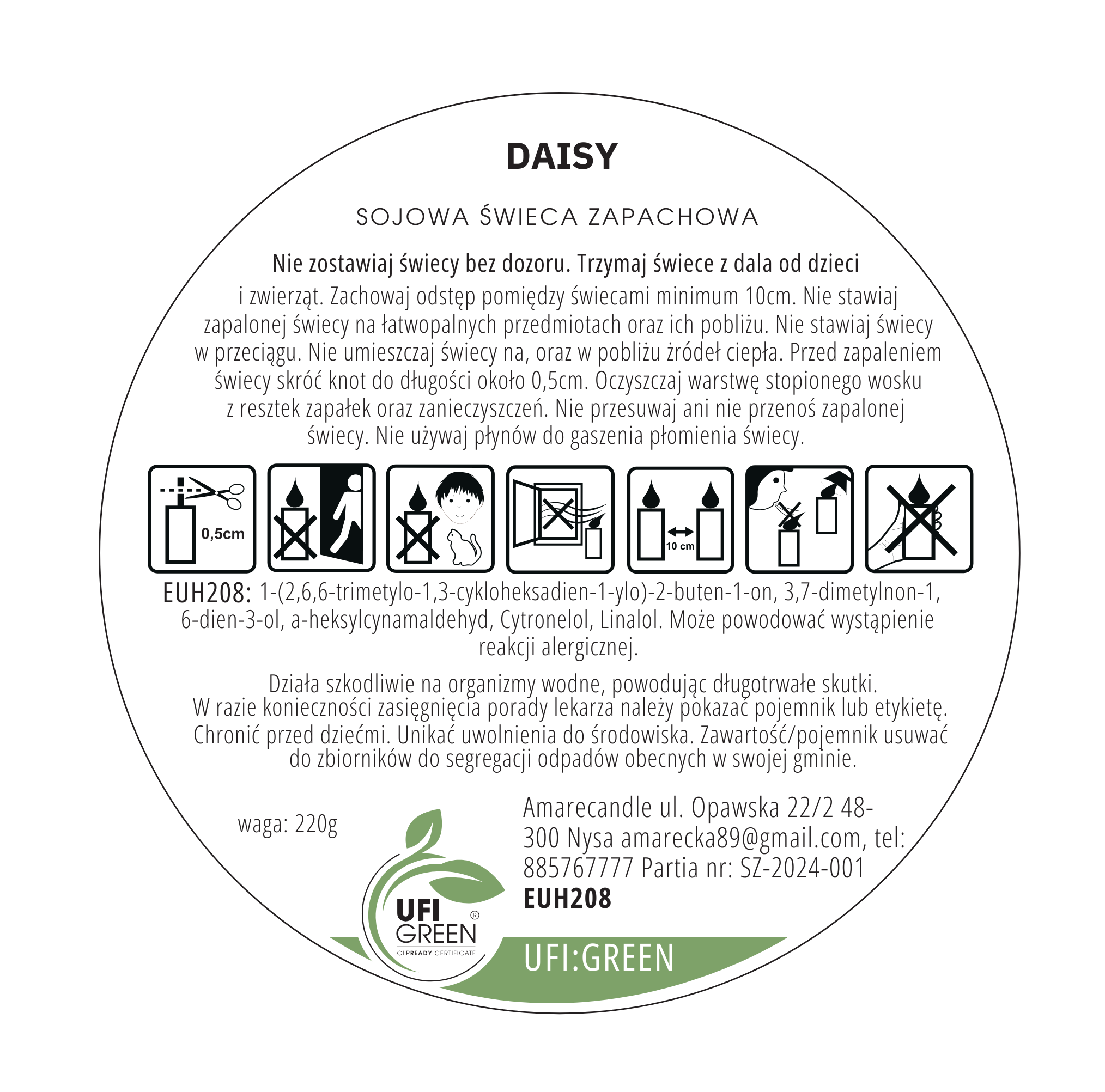 - Bezpieczeństwo: Upewnij się, że świeca nie jest umieszczona w pobliżu łatwopalnych przedmiotów i zawsze trzymaj ją z dala od dzieci i zwierząt